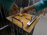 Weizmann Institute, IsraelThe following photos come from an undercover investigation carried out by 'Let the Animals Live' in Israel. The similarities between the horrific experiments carried out at the Weizmann Institute and those carried out by Oxford University are obvious, involving what seems to be identical painful experimental techniques and procedures. However, this is not suprising when the links between this institute in Israel and the University in Oxford are revealed. It was the Chief of the Veterinary Services of Oxford University who confirmed the conditions of the monkeys in the laboratory, provided advice on housing and on the thirst regimen for the primates at the Weizmann Institute of Science, Israel.