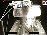 Photo Gallery[FELIX, OXFORD UNIVERSITY] [WEIZMAN INSTITUTE, ISRAEL] [CAMBRIDGE UNIVERSITY] FelixFelix, a macaque monkey, was trained to do certain tasks by Oxford University researchers by being deprived of food and water. He then had the top of his head sliced off and electrodes inserted into his brain before being killed. Felix suffered these debilitating and painful procedures in the name of Parkinson's disease research. However macaque monkeys don't get Parkinson's disease. The best vivisectors can do is brain damage them and give them similar symptons - a far cry from the disease in people.